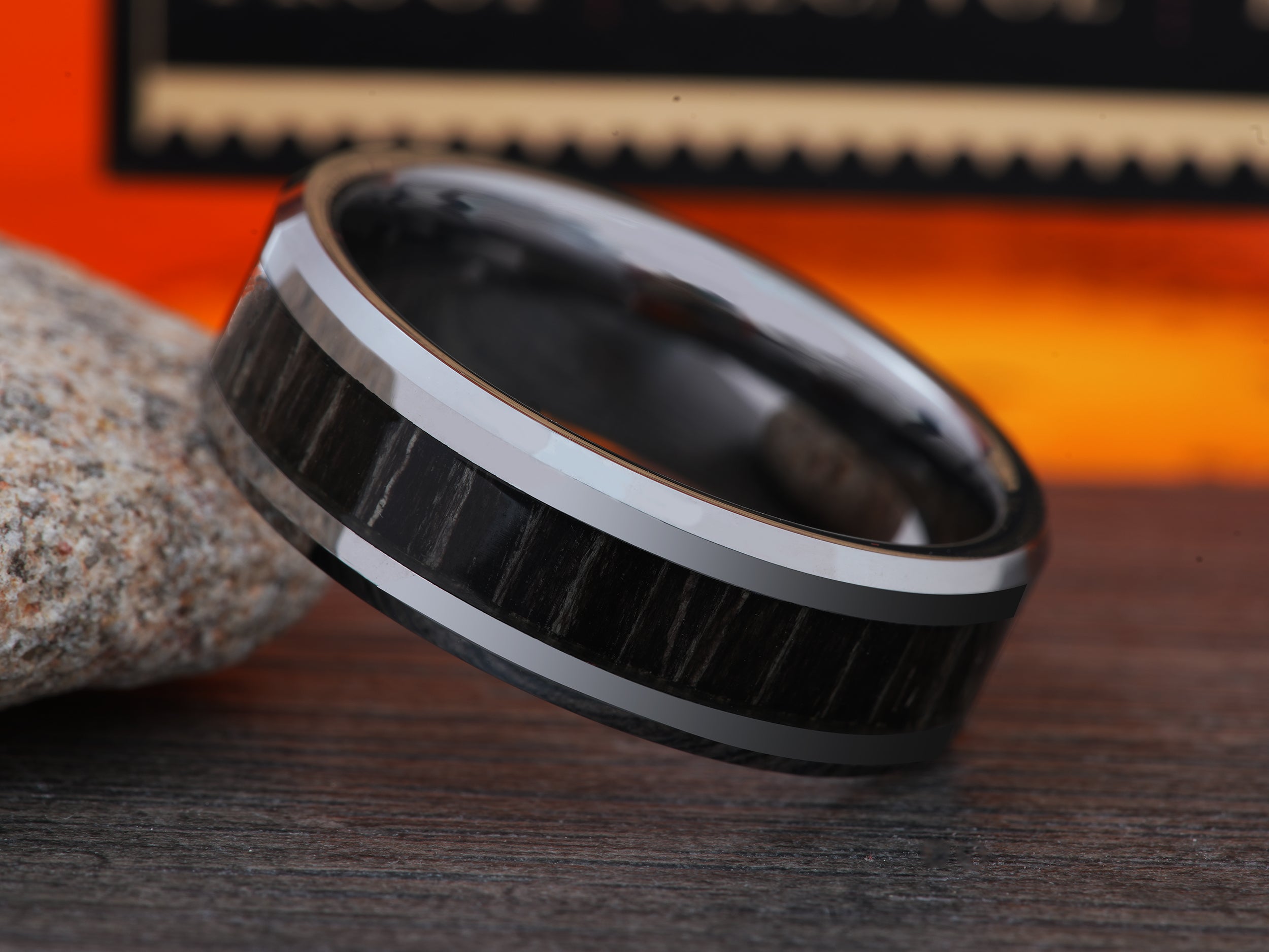 Current Processing Time:Mens tungsten wedding band with exotic wood inlay and beveled edges. The wood piece was carefully selected to have the best looking grain possible. It is sealed with an epoxy coat to keep the moisture out.